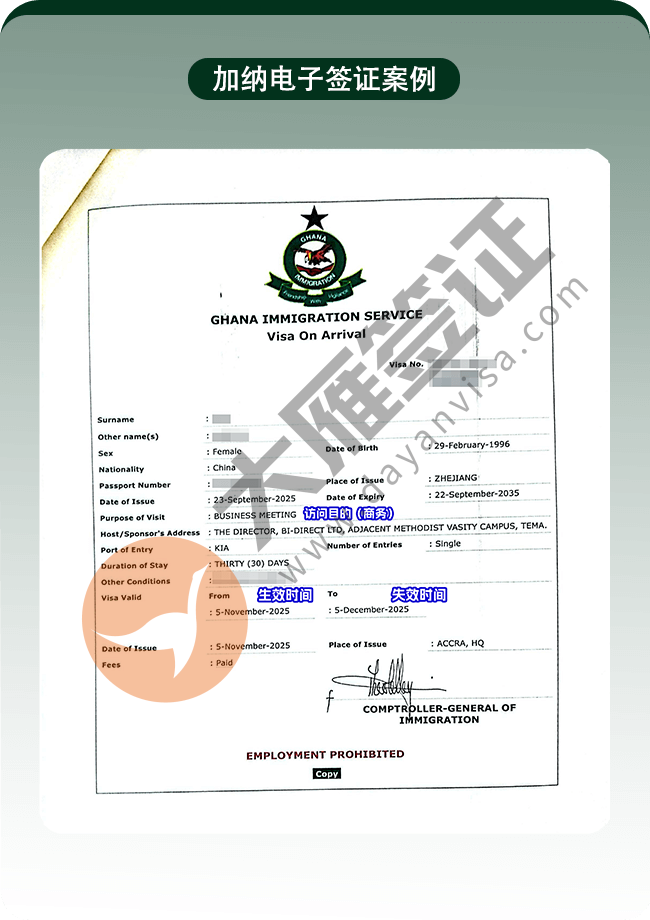 加纳电子签证7工快速出!