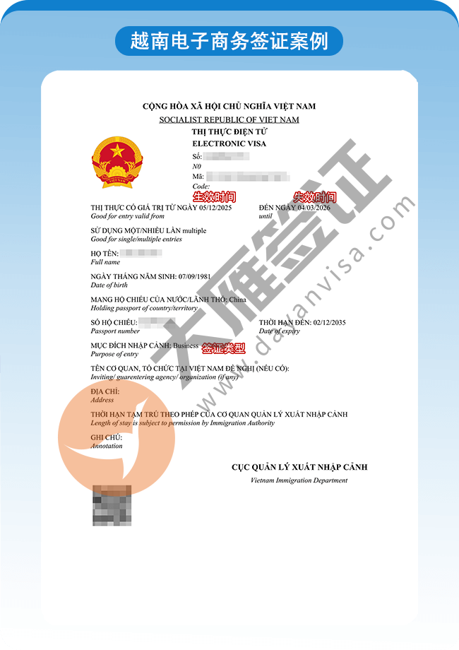 越南电子商务签证4小时快速出签!
