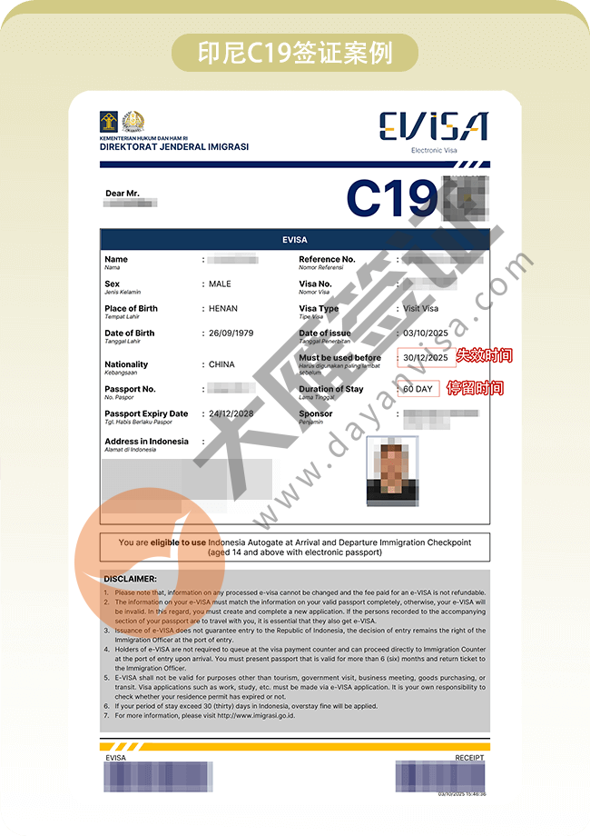 印度尼西亚C19售后服务签证出签啦!