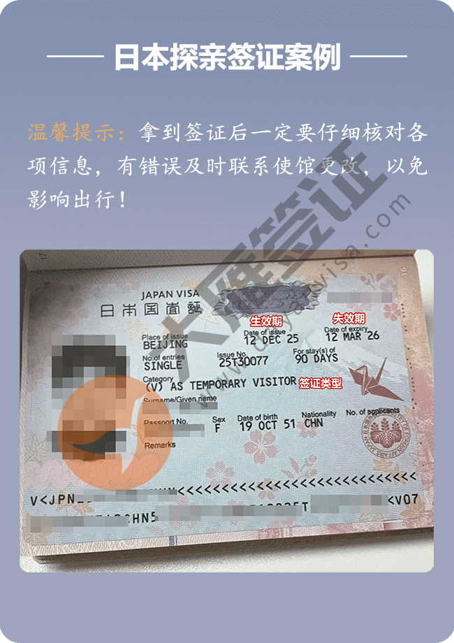 日本探亲签证北京递交稳定出签!