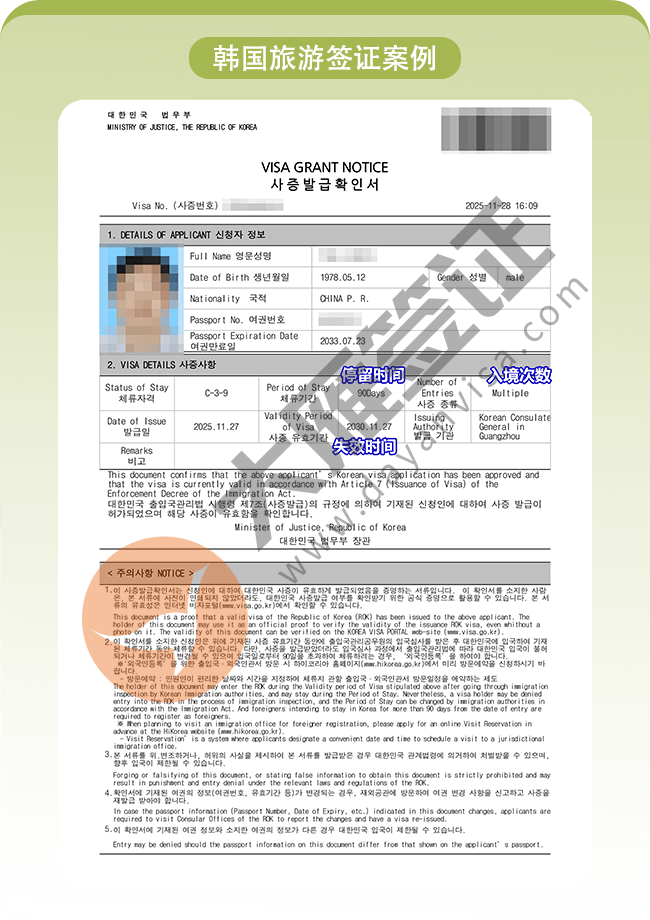 韩国旅游签证广州送签9工出!