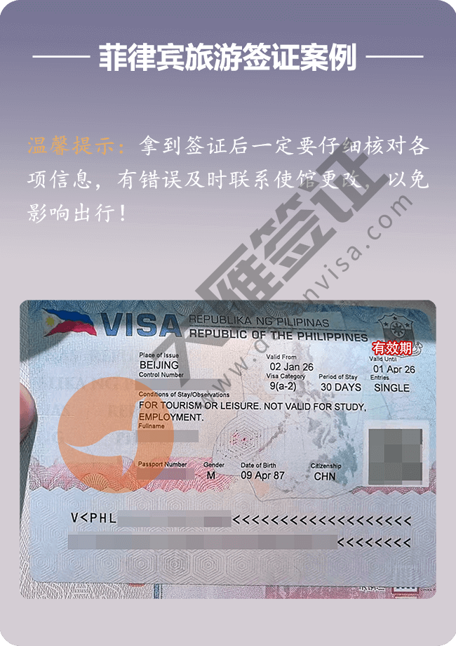 北京递交菲律宾旅游签证稳定出签!