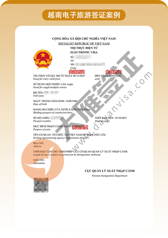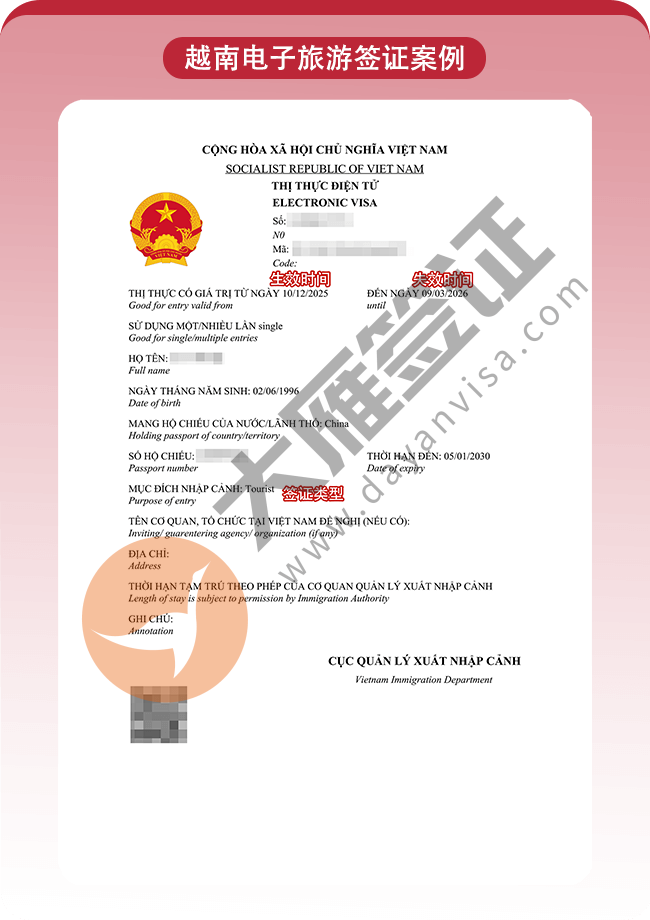 越南电子旅游签证加急1工出!