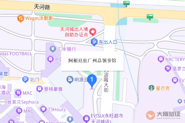 阿根廷共和国驻广州总领事馆(Consulate General of the Argentine Republic in Guangzhou)位于中华人民共和国广东省广州市天河区天河路208号粤海天河城大厦2405-2406室。