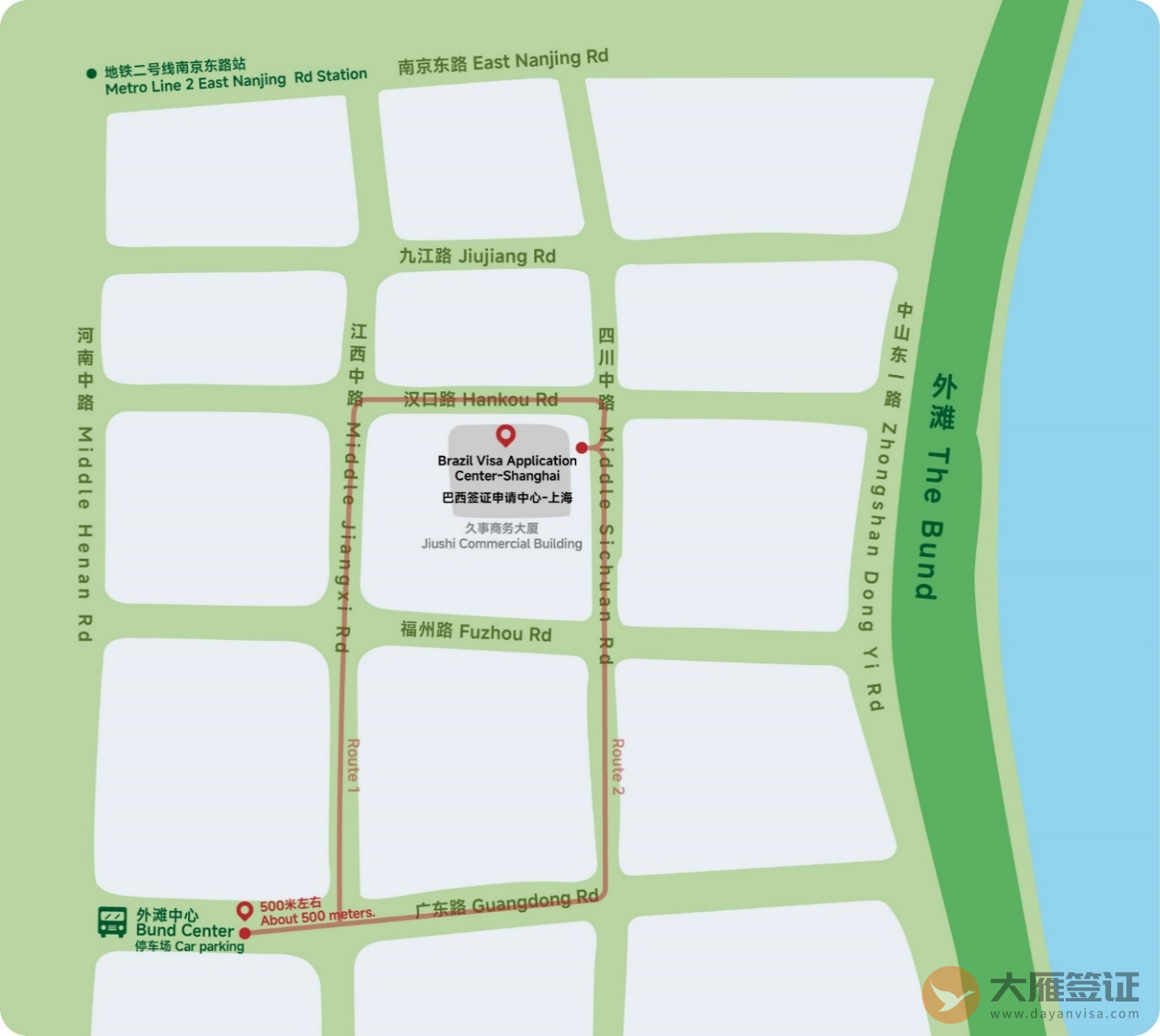 1、地铁:地铁2号线或10号线南京东路站下车(2口出),步行580米即到。