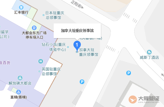 加拿大在中国大陆的北京,上海,广州,重庆设有使领馆,并在这些城市同时设有相应的签证申请中心。加拿大重庆签证中心位于重庆市渝中区武夷路大都会大厦1705室,申请人申请签证都需通过签证申请中心递交申请材料。