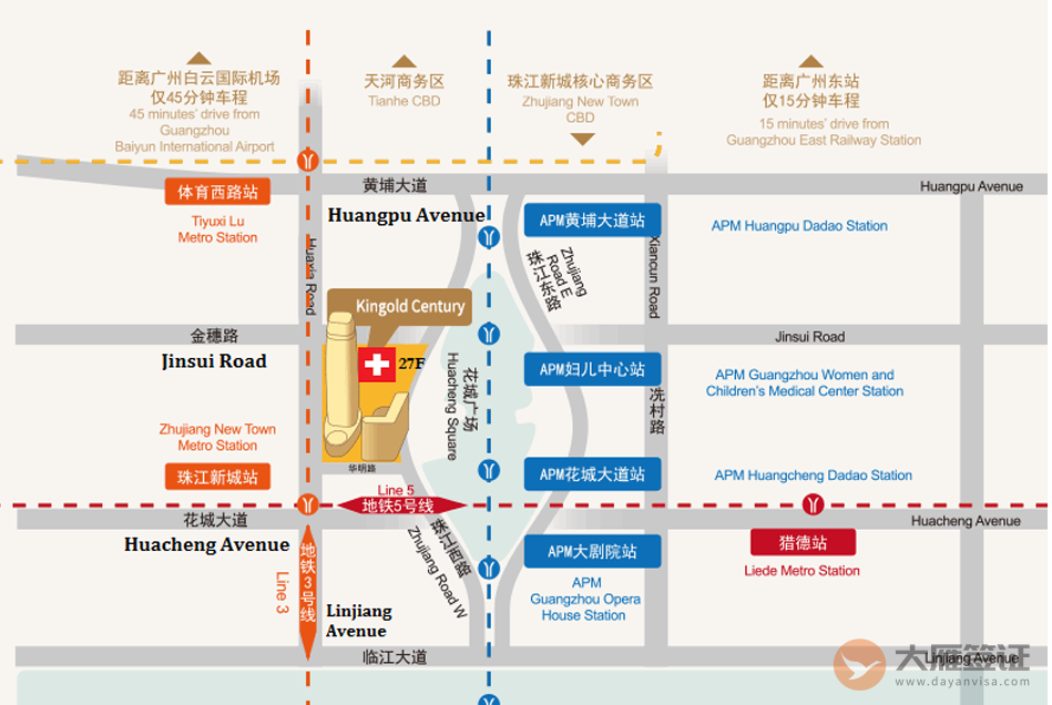 地铁三号线/五号线 , 珠江新城站 A1出口或高德置地春广场出口