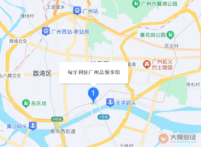 匈牙利驻广州总领事馆设立于中华人民共和国广东省广州市越秀区侨光西路13号星寰国际商业中心T1栋25楼07-09单元,作为匈牙利在华南地区的外交代表机构,其职能范围包含领事签证服务、经贸合作促进及文化教育交流。