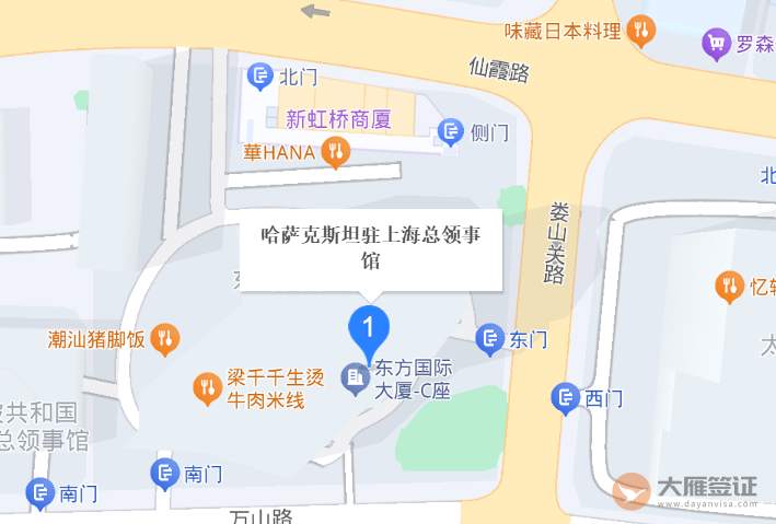 哈萨克斯坦共和国驻上海总领事馆于2005 年1月13日正式成立,哈萨克斯坦共和国驻上海总领事馆(Consulate General of the Republic of Kazakhstan in Shanghai)位于中华人民共和国上海市娄山关路85号东方国际大厦A座1005室。