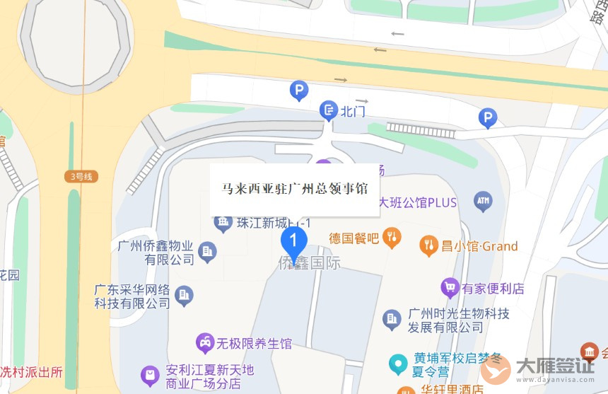 马来西亚驻广州总领事馆新址位于:广东省广州市天河区珠江新城金穗路62号侨鑫国际大厦28楼01-1,05-1和06单元。