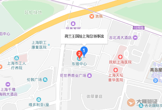 乘坐地铁10号线到达伊犁路站,步行约570米,到达荷兰驻沪总领事馆