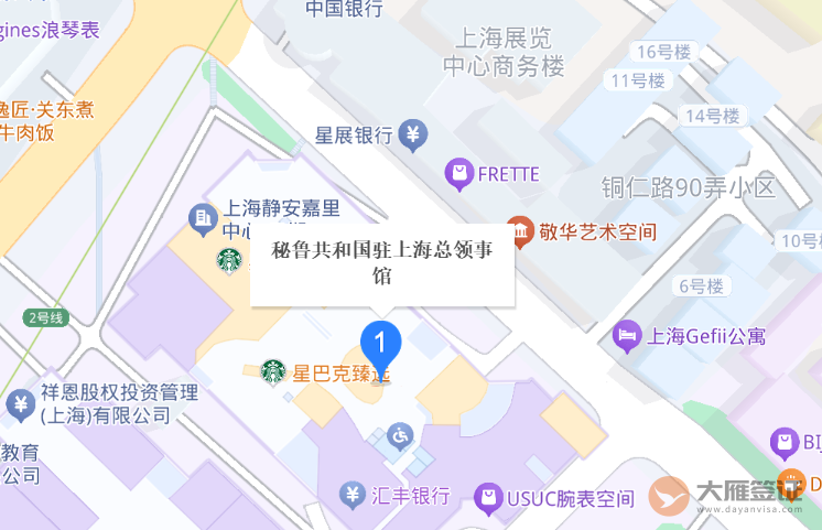 秘鲁驻上海总领事馆,处理的事务有贸易投资,旅游信息以及签证办理业务和认证等。属于上海领事馆的领区范围内的申请人可以在上海领区办理自己的秘鲁签证。