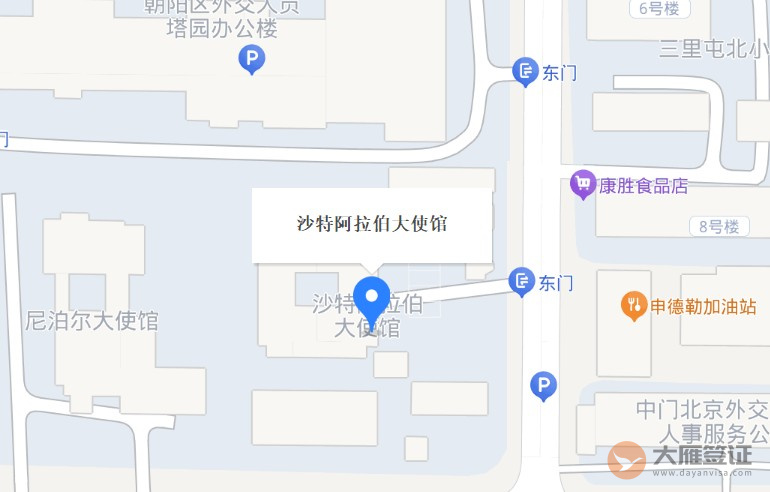 地铁10号线亮马桥站(D口出)下车,步行1.4km到达沙特驻华大使馆