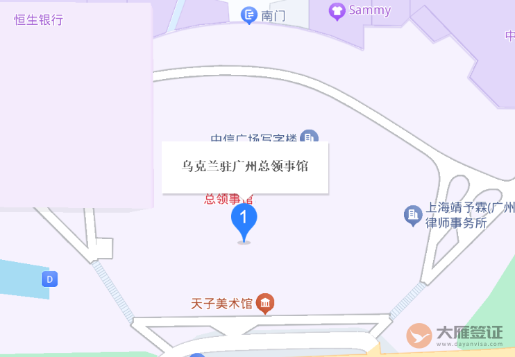 乌克兰驻广州总领事馆(Consulate General of Ukraine in Guangzhou)位于中华人民共和国广东省广州市天河天河北路233号中信广场1407室。