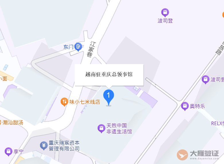 导航设置:直接搜索“财富中心财富一号B座”或“越南驻重庆总领事馆”。